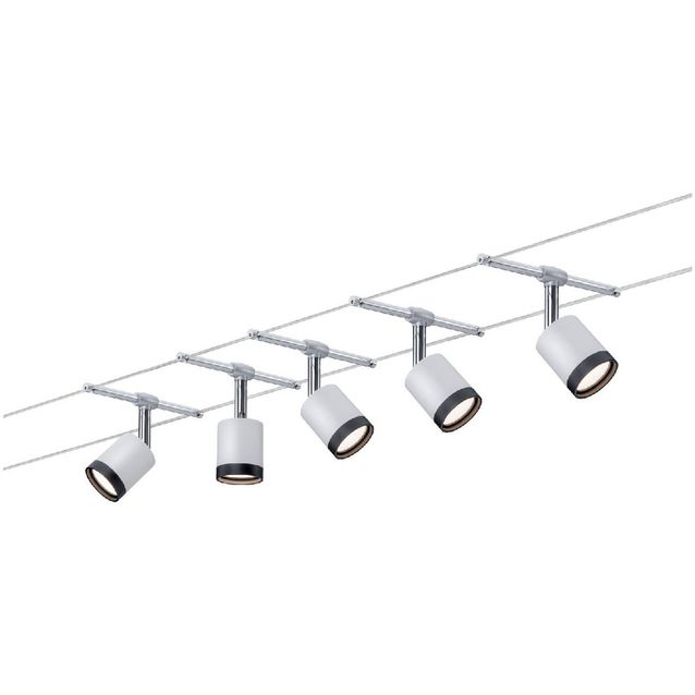 Paulmannin täydellinen vaijerivalaisinsetti sisältää 5 valaisinta, 10 metriä pitkän vaijerin sekä muuntajan. LED-polttimot eivät ole vaihdettavissa.