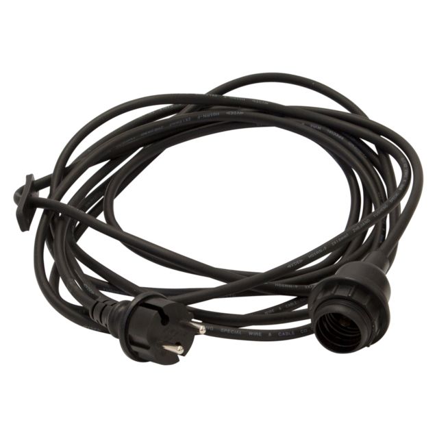 Musta valaisinjohtosarja ulkokäyttöön, pituus 5 metriä. IP44, E27-kanta, max. 25W. Johtosarjassa on rengas varjostimen kiinnitystä varten. Yhdistä johtosarjaan haluamasi valonlähde ja varjostin ja valaise esimerkiksi terassin ruokapöytä.