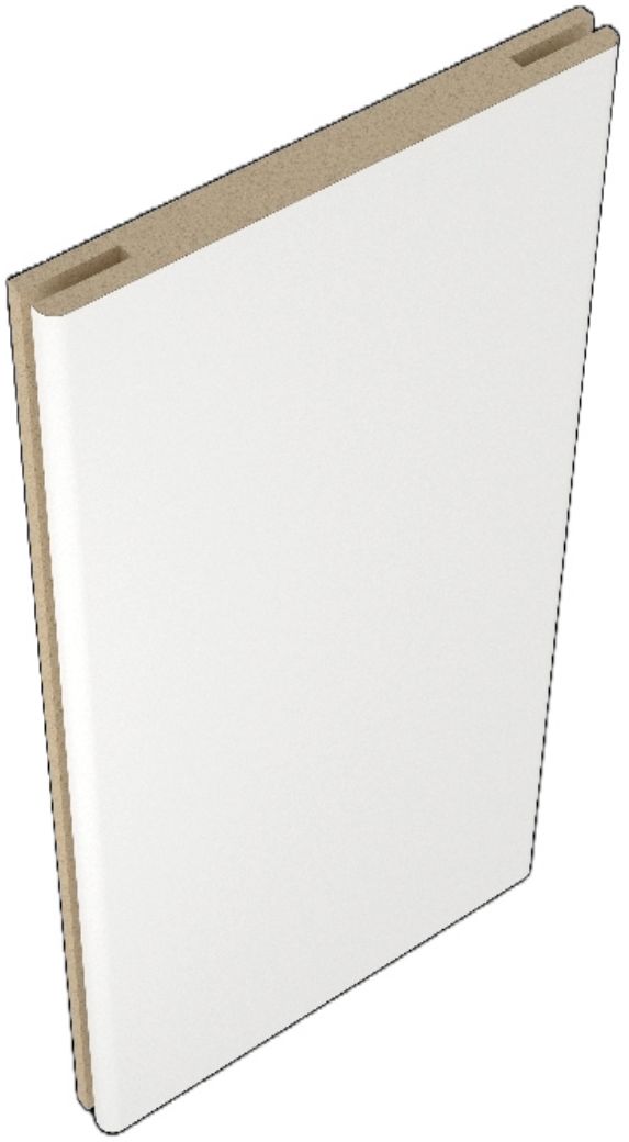 - Ovilehti muodostuu vaakasuuntaisista paneeleista, joiden paksuus on 11 mm, ja joiden välissä on muun oven kanssa samanväriset välilistat