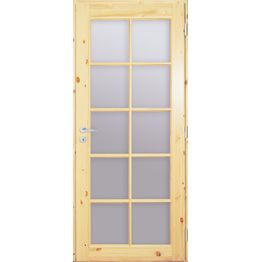 PVK-mäntypeiliovi suurella lasiaukolla on järeä ja malliltaan perinteinen mittatilaussisäovi. Ovilevyn pinta on terveoksaista mäntypuuta ja 4 mm tasolasia.
