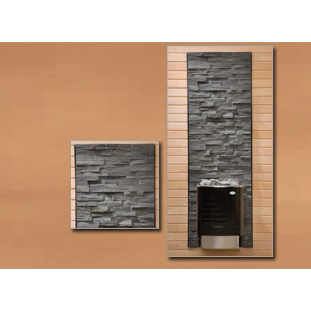 Ruuvikiinnitteinen verhoilukivielementti. Helppo asentaa! Yksi pakkaus sisältää n. 2-3 cm vahvat kivet 60x60 cm alueeseen. Kiinnitä sivukiskot seinään ja laita kivet paikoilleen. Kaikki osat ovat ruuvikiinnitteisiä, ruuvit ja kiskot sisältyvät pakkaukseen. Kiinnitys voidaan tehdä suoraan esim. olemassa olevan paneeliseinän päälle, ilman purku- tai muuraustöitä. Kivielementin maksimikorkeus lasketaan niin että katonrajaan ja muutama cm sekä lattianrajaan jää tyhjää mielellään 5-10 cm, jotta kivielementin tausta pääsee tuulettumaan.