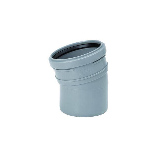 Kulmayhde viemäriputken mutkan tekemiseen. Lujuusluokka SN8. Toisessa päässä muhvi, toinen pää ilman muhvia.