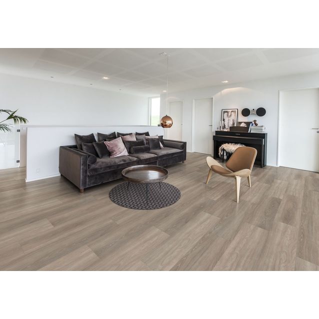 Kährsin Breeze-malliston harmaa Whinfell CLW 218 Click 6mm -vinyylilankku, jossa on kaunis tammikuosi. Vinyylilankku on saanut inspiraation raikkaan tuulen luontoon maalaamista maisemista. Lankussa on yleisilmeeltään rauhallinen ja luonnollisen kaunis puulattian design, ja luonnonrauhaa huokuvat sävyt luovat harmonisen taustan sisustukselle. Autenttista puulattian ilmettä luo hillitty puunsyykuvio. Yksisauvaisen lankun kaikilla sivuilla olevat mikroviisteet korostavat lankun muotoa ja viimeistelevät lattian tyylikkään ulkonäön. Lankun koko on 218 x 1210 mm ja paksuus 6 mm. Pakkauksessa on 2,11 m².