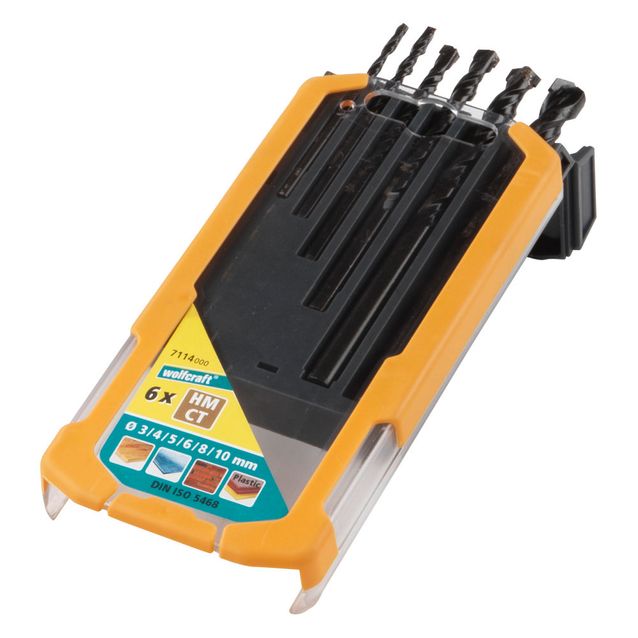Wolfcraftin laadukas yleisporanteräpaketti. Paketti sisältää kuusi erikokoista yleisporanterää. Terät on pakattu 2-osaiseen vetolaatikkoon.